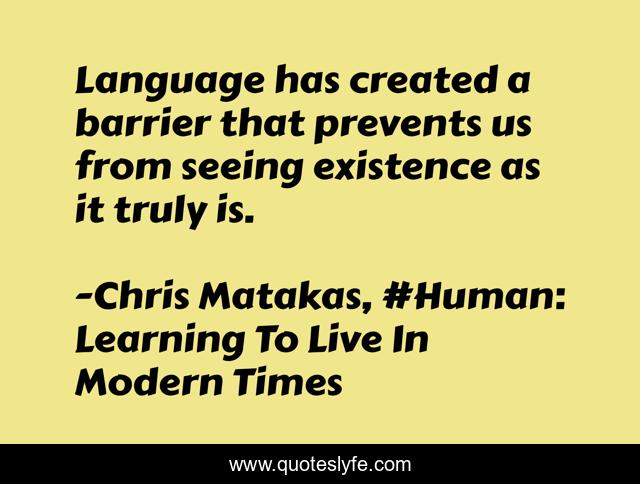 This page presents the quote "Language has created a barrier that prevents us from seeing existence as it truly is.". Author of this quote is Chris Matakas, #Human: Learning To Live In Modern Times. This quote is about existence, language, spirituality,.