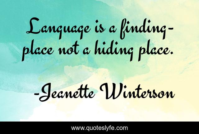 This page presents the quote "Language is a finding-place not a hiding place.". Author of this quote is Jeanette Winterson. This quote is about literature, language, writing,.