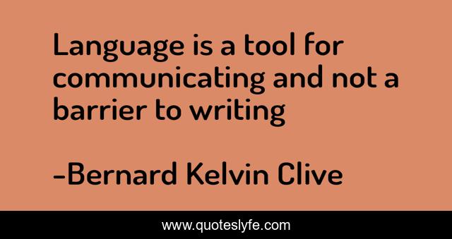 This page presents the quote "Language is a tool for communicating and not a barrier to writing". Author of this quote is Bernard Kelvin Clive. This quote is about language-barrier, author-brand, writing-life, writing-advice,.