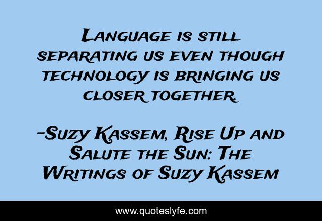 "Suzy Kassem, Rise Up and Salute the Sun: The Writings of Suzy Kassem Quotes." Quoteslyfe.com, 2025. Fri. 05 Dec. 2025. <https://www.quoteslyfe.com/quote/Language-is-still-separating-us-even-though-116736>.