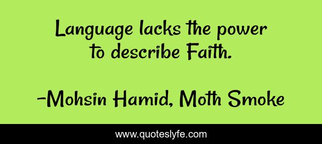 "Mohsin Hamid, Moth Smoke Quotes." Quoteslyfe.com, 2025. Fri. 05 Dec. 2025. <https://www.quoteslyfe.com/quote/Language-lacks-the-power-to-describe-Faith-88927>.