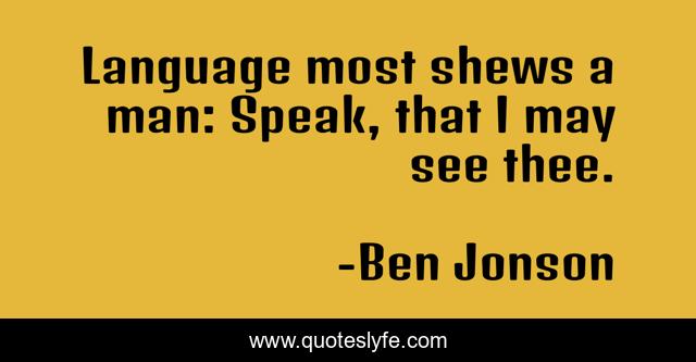 This page presents the quote "Language most shews a man: Speak, that I may see thee.". Author of this quote is Ben Jonson. This quote is about reveal, language,.
