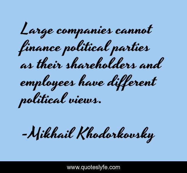 This page presents the quote "Large companies cannot finance political parties as their shareholders and employees have different political views.". Author of this quote is Mikhail Khodorkovsky. This quote is about employees, political,.
