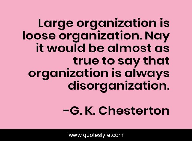 "G. K. Chesterton Quotes." Quoteslyfe.com, 2025. Fri. 05 Dec. 2025. <https://www.quoteslyfe.com/quote/Large-organization-is-loose-organization-Nay-it-272191>.