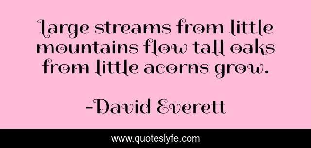 This page presents the quote "Large streams from little mountains flow tall oaks from little acorns grow.". Author of this quote is David Everett. .