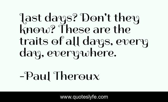 "Paul Theroux Quotes." Quoteslyfe.com, 2025. Fri. 05 Dec. 2025. <https://www.quoteslyfe.com/quote/Last-days-Don-t-they-know-These-175225>.