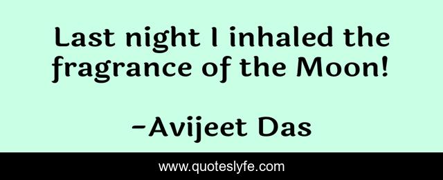 This page presents the quote "Last night I inhaled the fragrance of the Moon!". Author of this quote is Avijeet Das. This quote is about love, poetry, moon, fragrance, night, affection,.