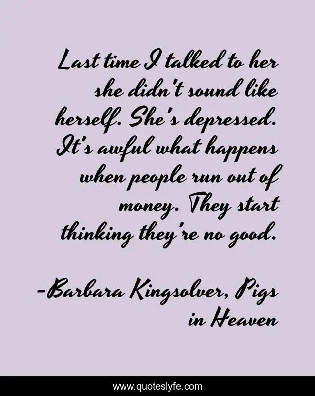 "Barbara Kingsolver, Pigs in Heaven Quotes." Quoteslyfe.com, 2025. Tue. 09 Dec. 2025. <https://www.quoteslyfe.com/quote/Last-time-I-talked-to-her-she-113594>.
