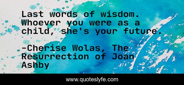 "Cherise Wolas, The Resurrection of Joan Ashby Quotes." Quoteslyfe.com, 2025. Mon. 08 Dec. 2025. <https://www.quoteslyfe.com/quote/Last-words-of-wisdom-Whoever-you-were-171258>.