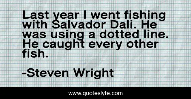 This page presents the quote "Last year I went fishing with Salvador Dali. He was using a dotted line. He caught every other fish.". Author of this quote is Steven Wright. This quote is about fishing, humour,.