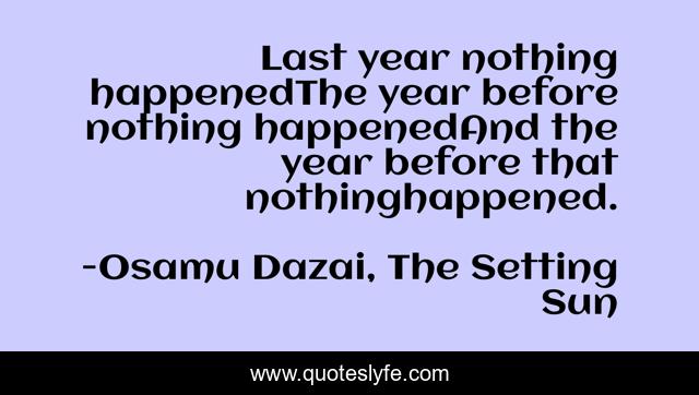 "Osamu Dazai, The Setting Sun Quotes." Quoteslyfe.com, 2025. Tue. 09 Dec. 2025. <https://www.quoteslyfe.com/quote/Last-year-nothing-happenedThe-year-before-nothing-52056>.
