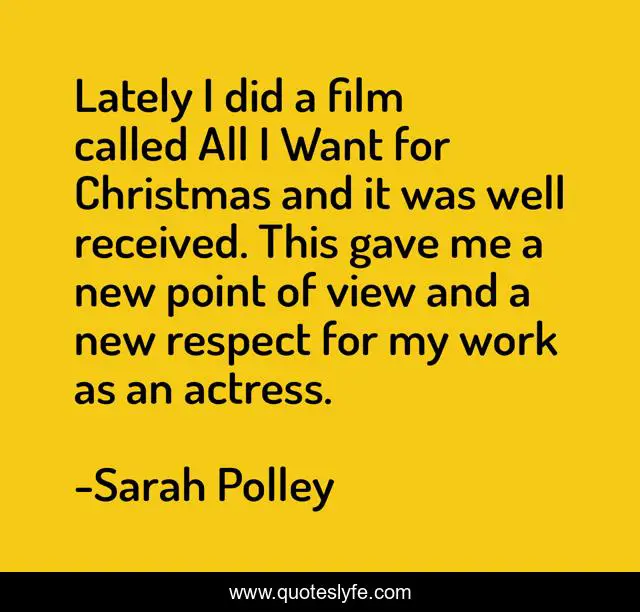 This page presents the quote "Lately I did a film called All I Want for Christmas and it was well received. This gave me a new point of view and a new respect for my work as an actress.". Author of this quote is Sarah Polley. This quote is about me, respect, work,.