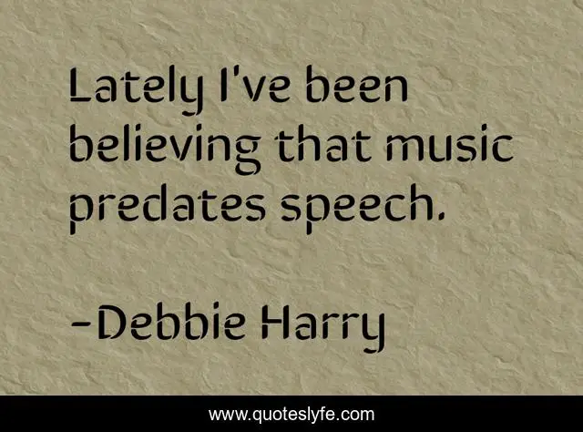This page presents the quote "Lately I've been believing that music predates speech.". Author of this quote is Debbie Harry. This quote is about speech, believing, been,.