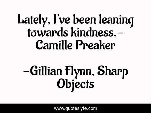 "Gillian Flynn, Sharp Objects Quotes." Quoteslyfe.com, 2025. Fri. 05 Dec. 2025. <https://www.quoteslyfe.com/quote/Lately-I-ve-been-leaning-towards-kindness-258796>.