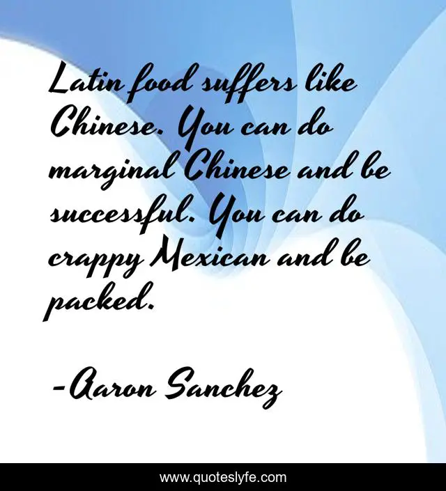 This page presents the quote "Latin food suffers like Chinese. You can do marginal Chinese and be successful. You can do crappy Mexican and be packed.". Author of this quote is Aaron Sanchez. This quote is about successful, mexican,.