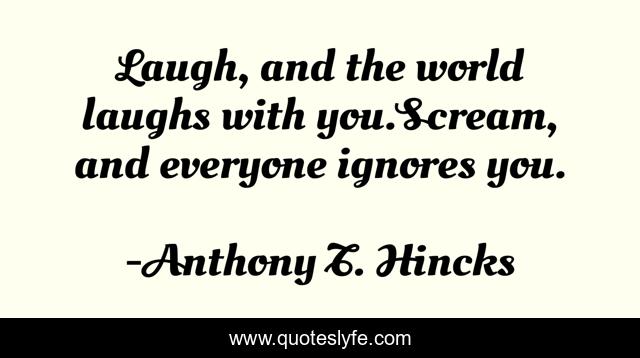 This page presents the quote "Laugh, and the world laughs with you.Scream, and everyone ignores you.". Author of this quote is Anthony T. Hincks. This quote is about the-world, philosophy, laughs, ignore, laugh, scream,.