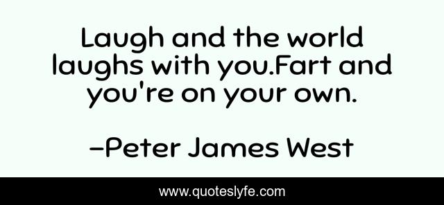 This page presents the quote "Laugh and the world laughs with you.Fart and you're on your own.". Author of this quote is Peter James West. This quote is about humor, humour,.