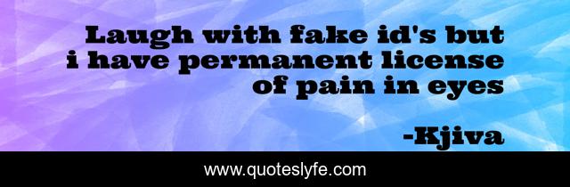 This page presents the quote "Laugh with fake id's but i have permanent license of pain in eyes". Author of this quote is Kjiva. This quote is about criminal, gangsta-hip-hop, inspirational, social-change, marathi-people, marathi-rapper, kjiva, hip-hop-philosophy, music,.