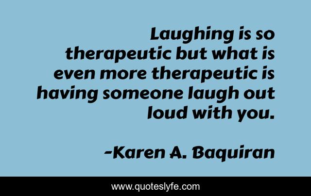 This page presents the quote "Laughing is so therapeutic but what is even more therapeutic is having someone laugh out loud with you.". Author of this quote is Karen A. Baquiran. This quote is about loveyourselfmovement, connection, therapy, friendship, laughing,.