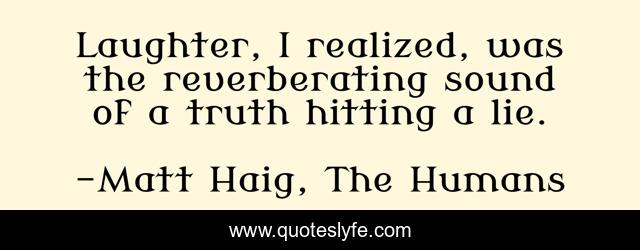 This page presents the quote "Laughter, I realized, was the reverberating sound of a truth hitting a lie.". Author of this quote is Matt Haig, The Humans. .