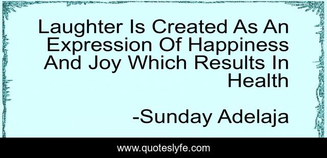 This page presents the quote "Laughter Is Created As An Expression Of Happiness And Joy Which Results In Health". Author of this quote is Sunday Adelaja. This quote is about joy, laughter, expression, happiness, result,.