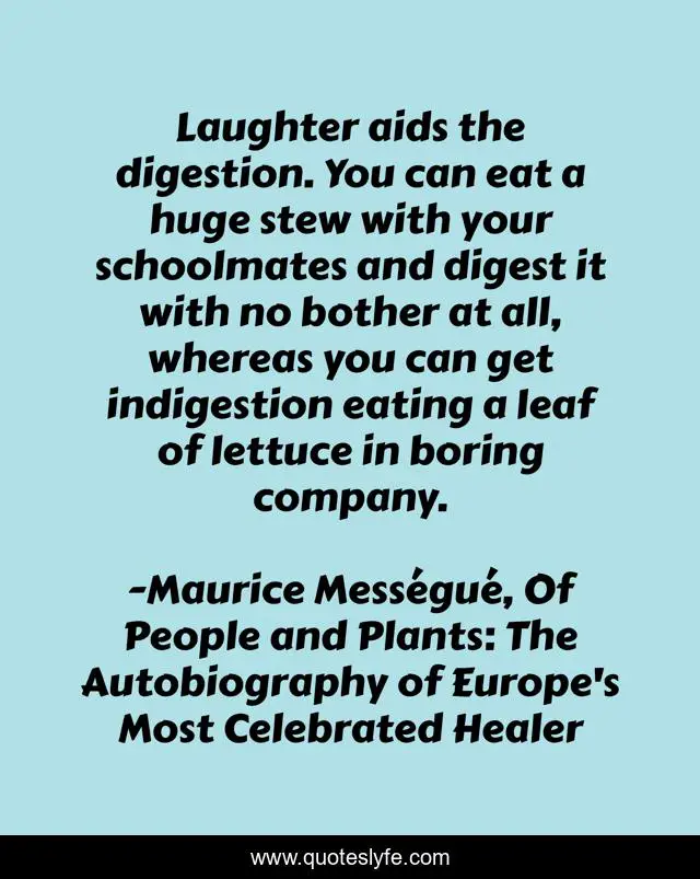 "Maurice Mességué, Of People and Plants: The Autobiography of Europe's Most Celebrated Healer Quotes." Quoteslyfe.com, 2025. Sat. 06 Dec. 2025. <https://www.quoteslyfe.com/quote/Laughter-aids-the-digestion-You-can-eat-177089>.