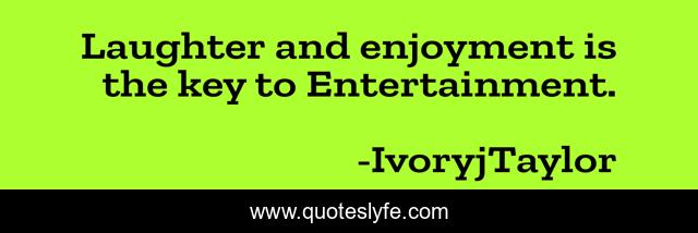 This page presents the quote "Laughter and enjoyment is the key to Entertainment.". Author of this quote is IvoryjTaylor. .