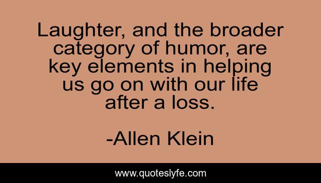 This page presents the quote "Laughter, and the broader category of humor, are key elements in helping us go on with our life after a loss.". Author of this quote is Allen Klein. This quote is about moving on, life, laughter,.
