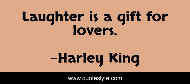 This page presents the quote "Laughter is a gift for lovers.". Author of this quote is Harley King. This quote is about lovers, laughter, gift,.