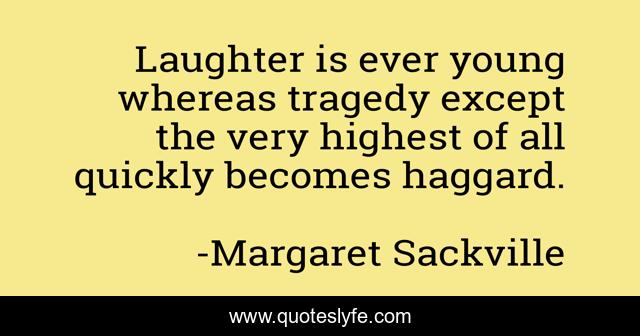 This page presents the quote "Laughter is ever young whereas tragedy except the very highest of all quickly becomes haggard.". Author of this quote is Margaret Sackville. .