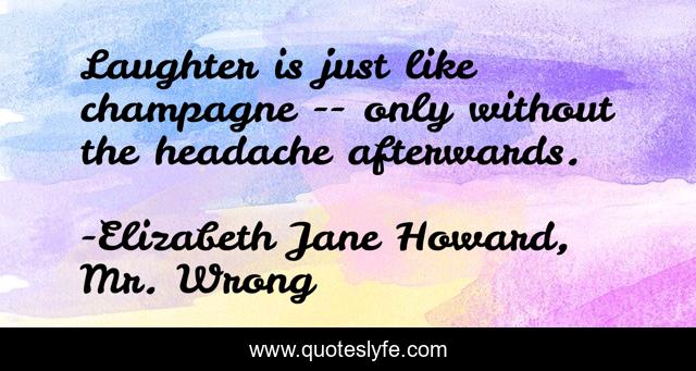 This page presents the quote "Laughter is just like champagne -- only without the headache afterwards.". Author of this quote is Elizabeth Jane Howard, Mr. Wrong. This quote is about champagne, laughter,.