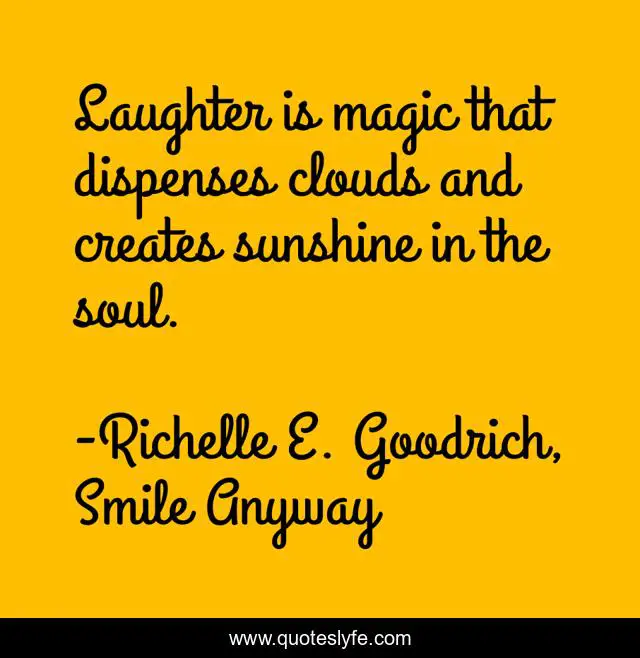 "Richelle E. Goodrich, Smile Anyway Quotes." Quoteslyfe.com, 2025. Fri. 05 Dec. 2025. <https://www.quoteslyfe.com/quote/Laughter-is-magic-that-dispenses-clouds-and-134161>.