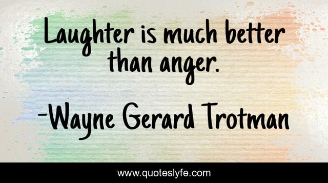 This page presents the quote "Laughter is much better than anger.". Author of this quote is Wayne Gerard Trotman. This quote is about laughter-is-the-best-medicine, anger-management, laughter, quotable, wisdom, anger, quotes-to-live-by, anger-control,.