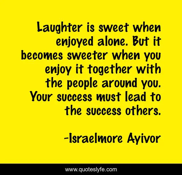 "Israelmore Ayivor Quotes." Quoteslyfe.com, 2025. Sat. 06 Dec. 2025. <https://www.quoteslyfe.com/quote/Laughter-is-sweet-when-enjoyed-alone-But-120772>.