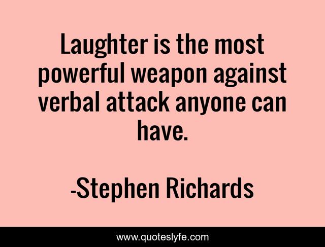 "Stephen Richards Quotes." Quoteslyfe.com, 2025. Fri. 05 Dec. 2025. <https://www.quoteslyfe.com/quote/Laughter-is-the-most-powerful-weapon-against-279704>.