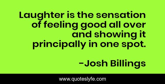 "Josh Billings Quotes." Quoteslyfe.com, 2025. Fri. 05 Dec. 2025. <https://www.quoteslyfe.com/quote/Laughter-is-the-sensation-of-feeling-good-268741>.