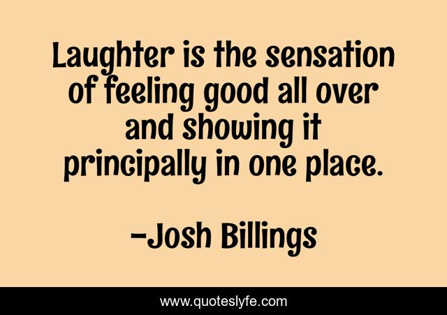 "Josh Billings Quotes." Quoteslyfe.com, 2025. Sat. 06 Dec. 2025. <https://www.quoteslyfe.com/quote/Laughter-is-the-sensation-of-feeling-good-303718>.