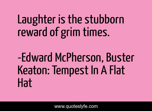 This page presents the quote "Laughter is the stubborn reward of grim times.". Author of this quote is Edward McPherson, Buster Keaton: Tempest In A Flat Hat. This quote is about humor, keaton, laughter, buster,.