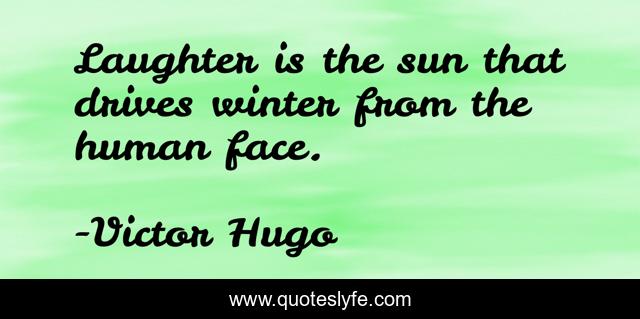 This page presents the quote "Laughter is the sun that drives winter from the human face.". Author of this quote is Victor Hugo. This quote is about laughter, winter,.