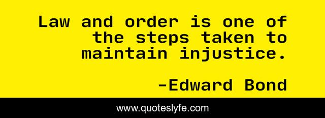 This page presents the quote "Law and order is one of the steps taken to maintain injustice.". Author of this quote is Edward Bond. This quote is about law, lawyers,.