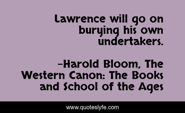 This page presents the quote "Lawrence will go on burying his own undertakers.". Author of this quote is Harold Bloom, The Western Canon: The Books and School of the Ages. This quote is about perseverance, legacy, heritage,.