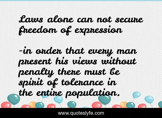 This page presents the quote "Laws alone can not secure freedom of expression". Author of this quote is in order that every man present his views without penalty there must be spirit of tolerance in the entire population.. .