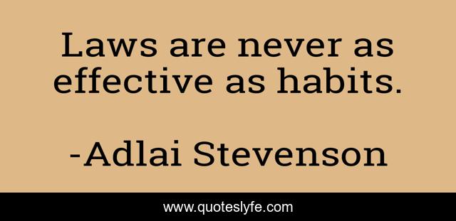 This page presents the quote "Laws are never as effective as habits.". Author of this quote is Adlai Stevenson. This quote is about tradition, habit,.