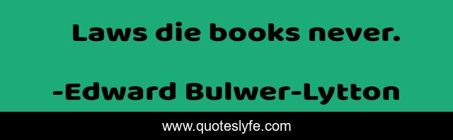 This page presents the quote "Laws die books never.". Author of this quote is Edward Bulwer-Lytton. This quote is about books, reading,.