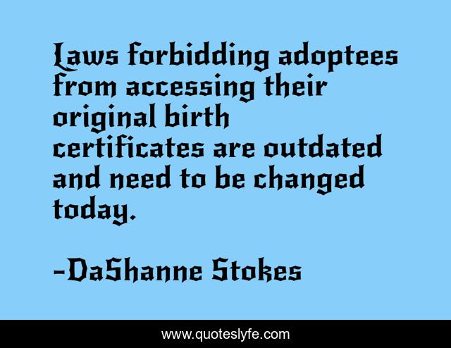 "DaShanne Stokes Quotes." Quoteslyfe.com, 2025. Mon. 08 Dec. 2025. <https://www.quoteslyfe.com/quote/Laws-forbidding-adoptees-from-accessing-their-original-57250>.