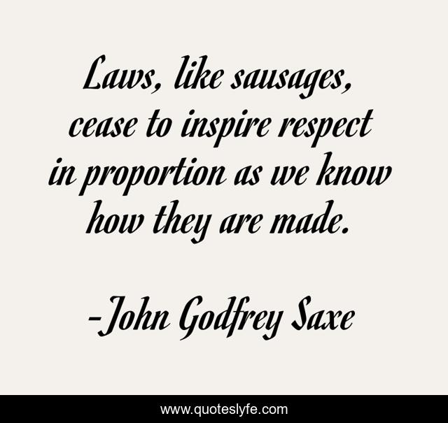 "John Godfrey Saxe Quotes." Quoteslyfe.com, 2025. Sat. 06 Dec. 2025. <https://www.quoteslyfe.com/quote/Laws-like-sausages-cease-to-inspire-respect-184997>.