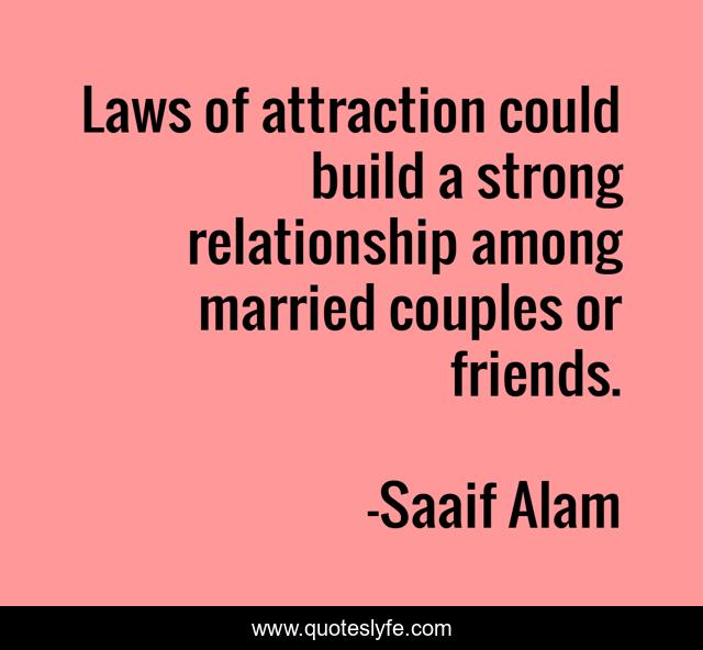 This page presents the quote "Laws of attraction could build a strong relationship among married couples or friends.". Author of this quote is Saaif Alam. .