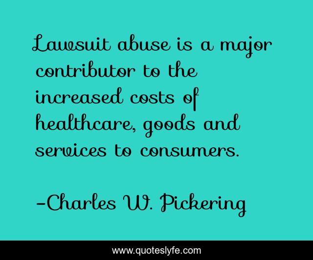 This page presents the quote "Lawsuit abuse is a major contributor to the increased costs of healthcare, goods and services to consumers.". Author of this quote is Charles W. Pickering. This quote is about healthcare, abuse, costs,.