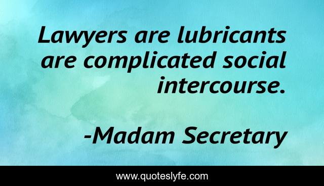 "Madam Secretary Quotes." Quoteslyfe.com, 2025. Mon. 08 Dec. 2025. <https://www.quoteslyfe.com/quote/Lawyers-are-lubricants-are-complicated-social-intercourse-117862>.