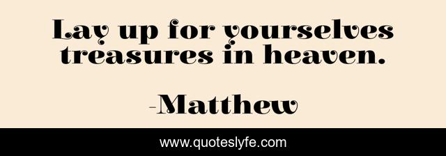This page presents the quote "Lay up for yourselves treasures in heaven.". Author of this quote is Matthew. .